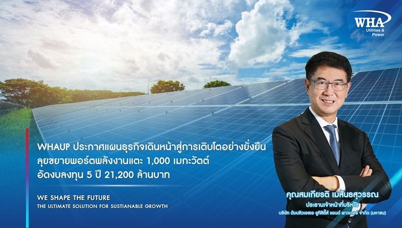 WHAUP ประกาศแผนธุรกิจเดินหน้าสู่การเติบโตอย่างยั่งยืน ลุยขยายพอร์ตพลังงานแตะ 1,000 เมกะวัตต์ อัดงบลงทุน 5 ปี 21,200 ล้านบาท