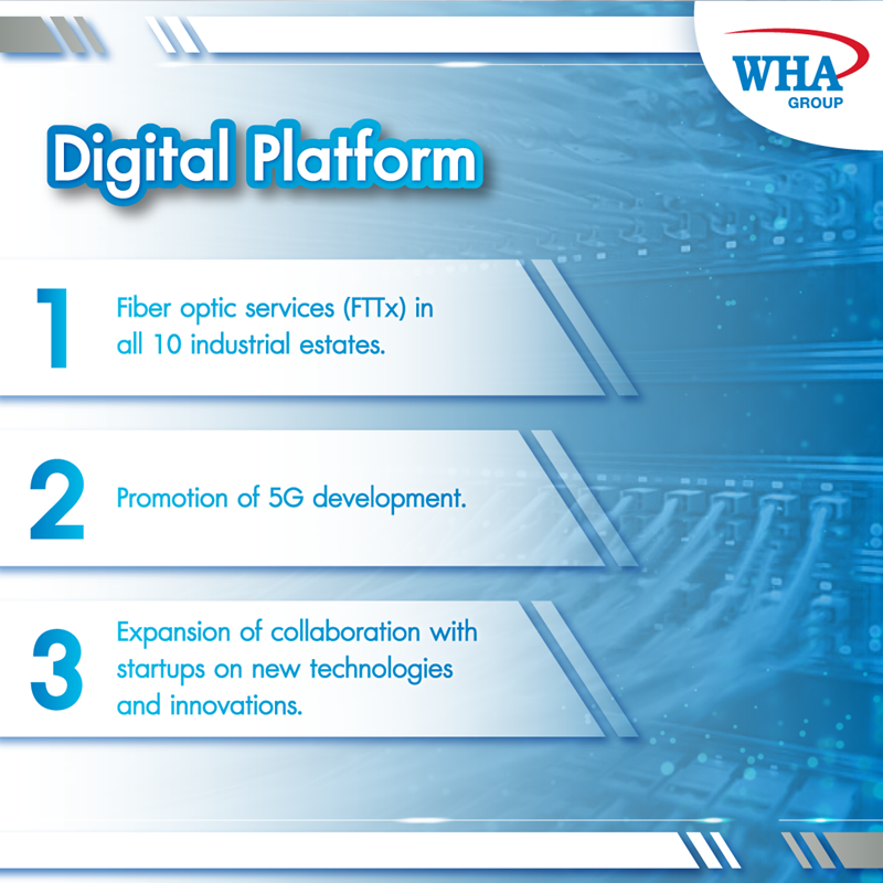 ดำเนินแผนการให้บริการไฟเบอร์ออปติก (FTTx) ในนิคมอุตสาหกรรมทั้ง 10 แห่งของดับบลิวเอชเอในประเทศไทย ซึ่งปัจจุบัน FTTx ได้ให้บริการแก่ลูกค้าทั้งหมดในนิคมอุตสาหกรรม 6 แห่ง ในขณะที่กำลังดำเนินการติดตั้งให้ครอบคลุมพื้นที่ในนิคมอุตสาหกรรมที่เหลืออยู่อีก 4 แห่ง