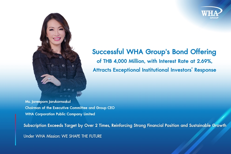Successful WHA Group's Bond Offering of THB 4,000 Million, with Interest Rate at 2.69%, Attracts Exceptional Institutional Investors’ Response - Subscription Exceeds Target by Over 2 Times, Reinforcing Strong Financial Position and Sustainable Growth Under WHA Mission: WE SHAPE THE FUTURE