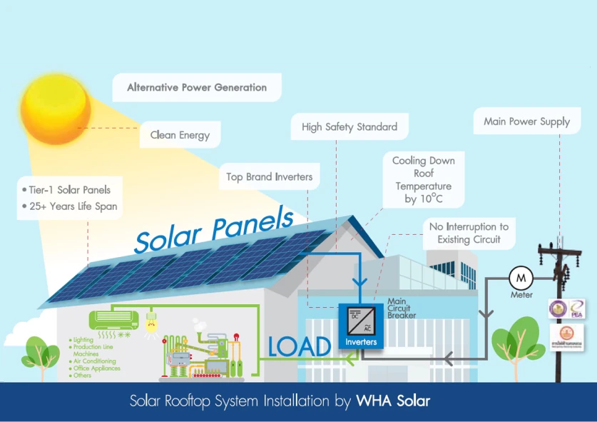 WHA Solar ให้บริการโซลูชันด้านพลังงานแสงอาทิตย์แก่ธุรกิจหลากหลายประเภท ครอบคลุมทุกภาคอุตสาหกรรมทั่วประเทศไทย ทั้งอาคารพาณิชย์ นิคมอุตสาหกรรม และโลจิสติกส์พาร์ค มาตั้งแต่ พ.ศ. 2561 WHA Solar เป็นส่วนหนึ่งของธุรกิจ WHA Utilities & Power (WHAUP) และ WHA Group ทั้งหมด เราพร้อมมอบบริการที่ตอบโจทย์ทุกความต้องการของผู้ประกอบการด้วยระบบผลิตพลังงานแสงอาทิตย์สุดล้ำกว่าใคร