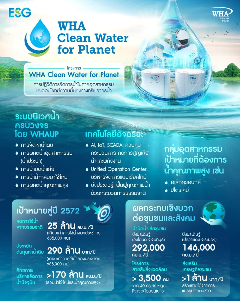 WHA Group ก้าวสู่ความยั่งยืนด้วย โครงการ WHA Clean Water for Planet จัดการน้ำครบวงจร ตั้งแต่ต้นน้ำถึงปลายน้ำ ด้วยเทคโนโลยี AI, IoT และ SCADA เพื่อส่งมอบน้ำที่มีคุณภาพ ให้ภาคอุตสาหกรรมอย่างยั่งยืน