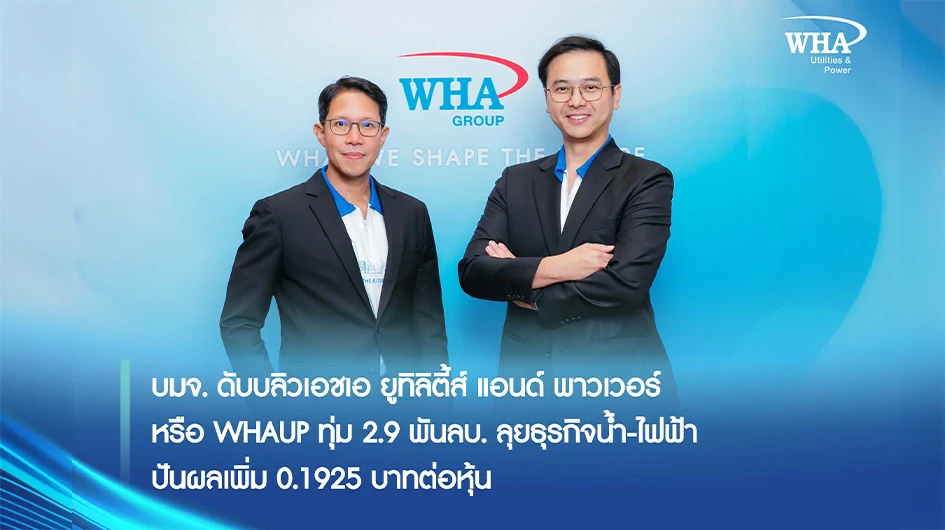 WHAUP ทุ่ม 2.9 พันลบ. ลุยธุรกิจน้ำ-ไฟฟ้า ปันผลเพิ่ม 0.1925 บาทต่อหุ้น 28 เม.ย.นี้