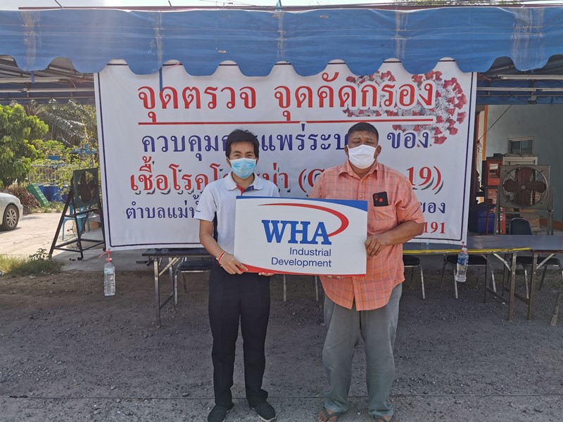 ในส่วนของเขตประกอบการอุตสาหกรรมดับบลิวเอชเอ ระยอง (WHA IR) ผู้จัดการนิคมฯ และคณะของดับบลิวเอชเอ ได้เดินทางไปเยี่ยมสมาชิกชุมชนหนองบัว จังหวัดระยอง เพื่อมอบเงินสนับสนุนให้แก่อาสาสมัครนำไปผลิตเจลแอลกอฮอล์ล้างมือและหน้ากากผ้า รวมถึงทีมงานยังได้ร่วมแบ่งปันความรู้ด้านการดูแลรักษาสุขอนามัยเพื่อให้ห่างไกลจากเชื้อไวรัสโควิด-19 อีกด้วย
