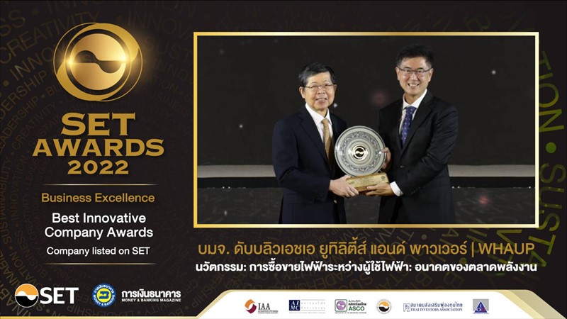 WHAUP คว้ารางวัล Best Innovative Company Awards ด้านนวัตกรรม Peer-to-Peer Energy Trading ในงาน SET Awards 2022