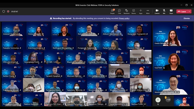 ดับบลิวเอชเอ อินดัสเตรียล ดีเวลลอปเมนท์ จัดสัมมนาออนไลน์ “WHA Investor Club Webinar: PDPA in Security Solutions”