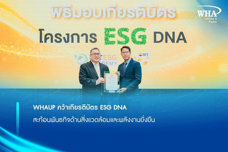 WHAUP คว้าเกียรติบัตร ESG DNA สะท้อนพันธกิจด้านสิ่งแวดล้อมและพลังงานยั่งยืน