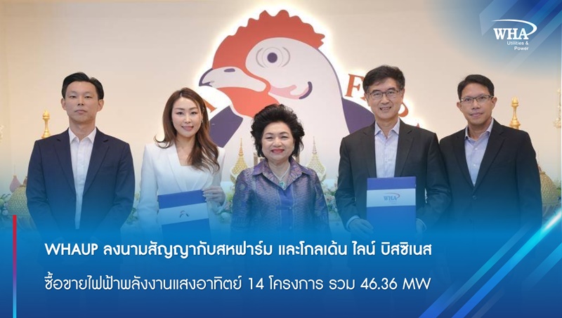 WHAUP ผนึก สหฟาร์ม และ โกลเด้น ไลน์ บิสซิเนส ร่วมลงนามซื้อขายไฟฟ้าพลังงานแสงอาทิตย์ 14 โครงการ 46.36 MW