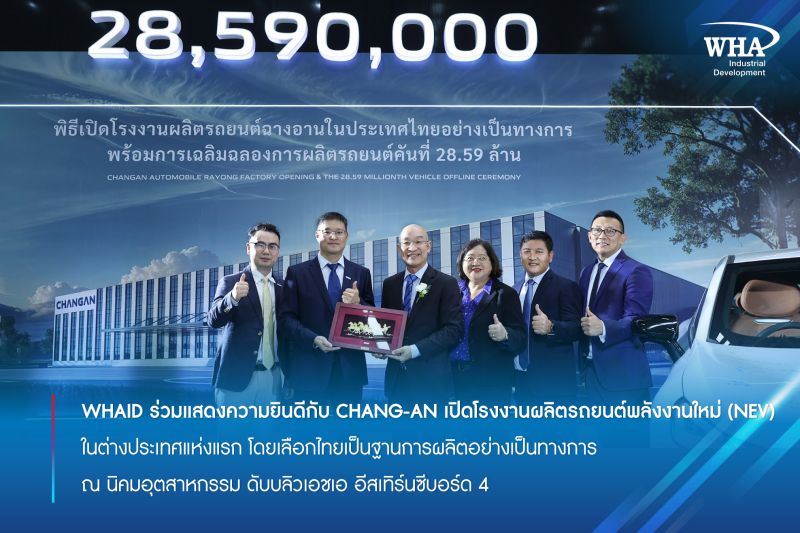 WHAID ร่วมแสดงความยินดีกับ CHANG-AN เปิดโรงงานผลิตรถยนต์พลังงานใหม่ (NEV) ในต่างประเทศแห่งแรก โดยเลือกไทยเป็นฐานการผลิตอย่างเป็นทางการ ณ นิคมอุตสาหกรรม ดับบลิวเอชเอ อีสเทิร์นซีบอร์ด 4